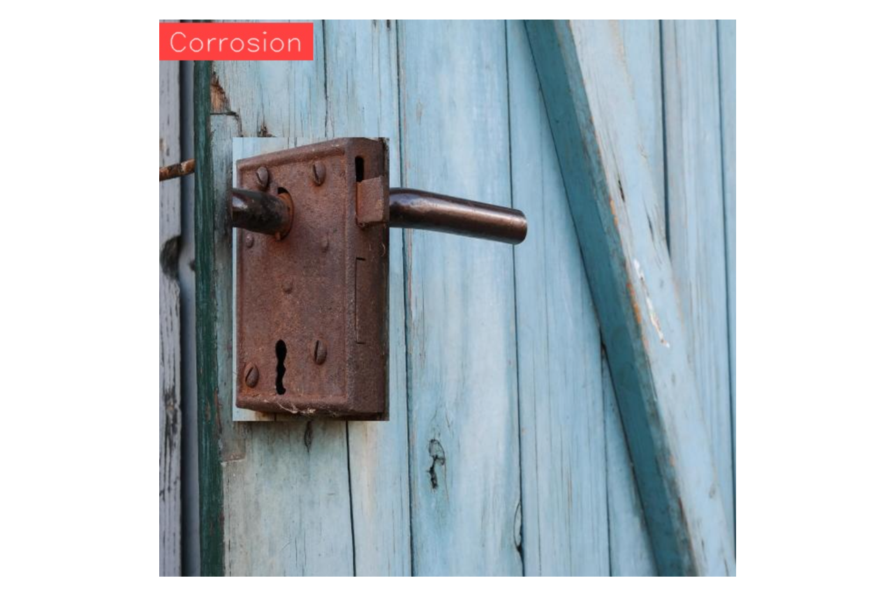 In this example we will see how to build and use object detection model to detect corrosion in an image. The goal is to train the model to locate where corrosion is present in an image with bounding boxes. The steps are following: