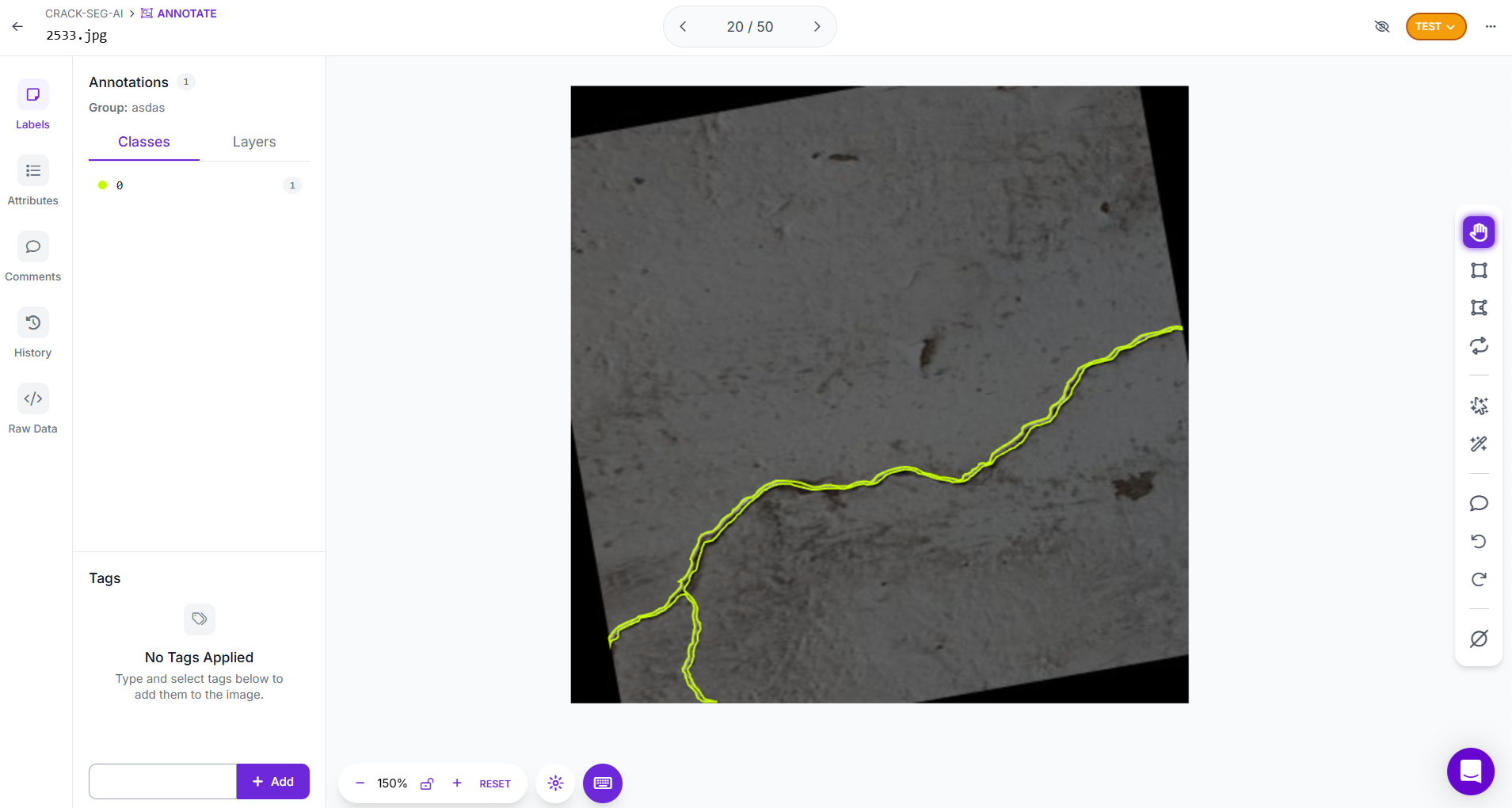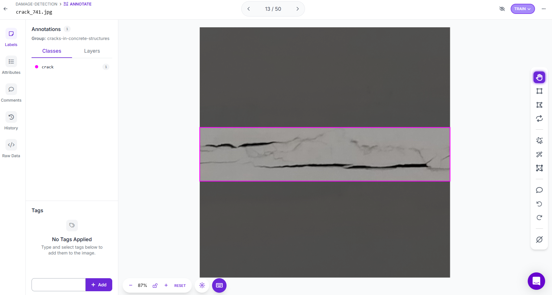 - Simplifies dataset handling by allowing quick upload and annotation of crack images, with smart tools like Label Assist and Smart Polygon to accelerate labeling.