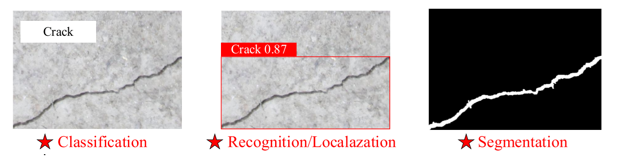 - Semantic segmentation models (e.g., U-Net, DeepLab) to provide pixel-wise maps of cracks, enabling measurement of crack length and width.