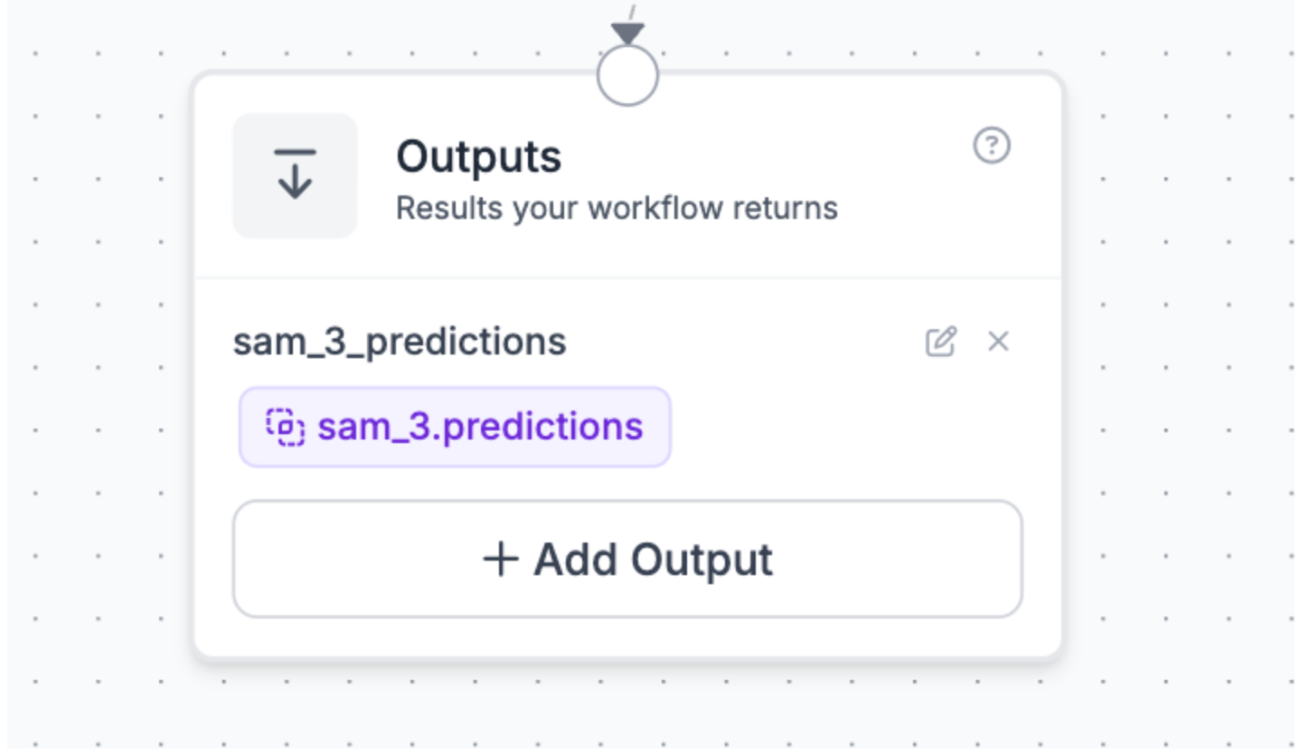 Lastly, connect it to the outputs block, and return the SAM 3 predictions.