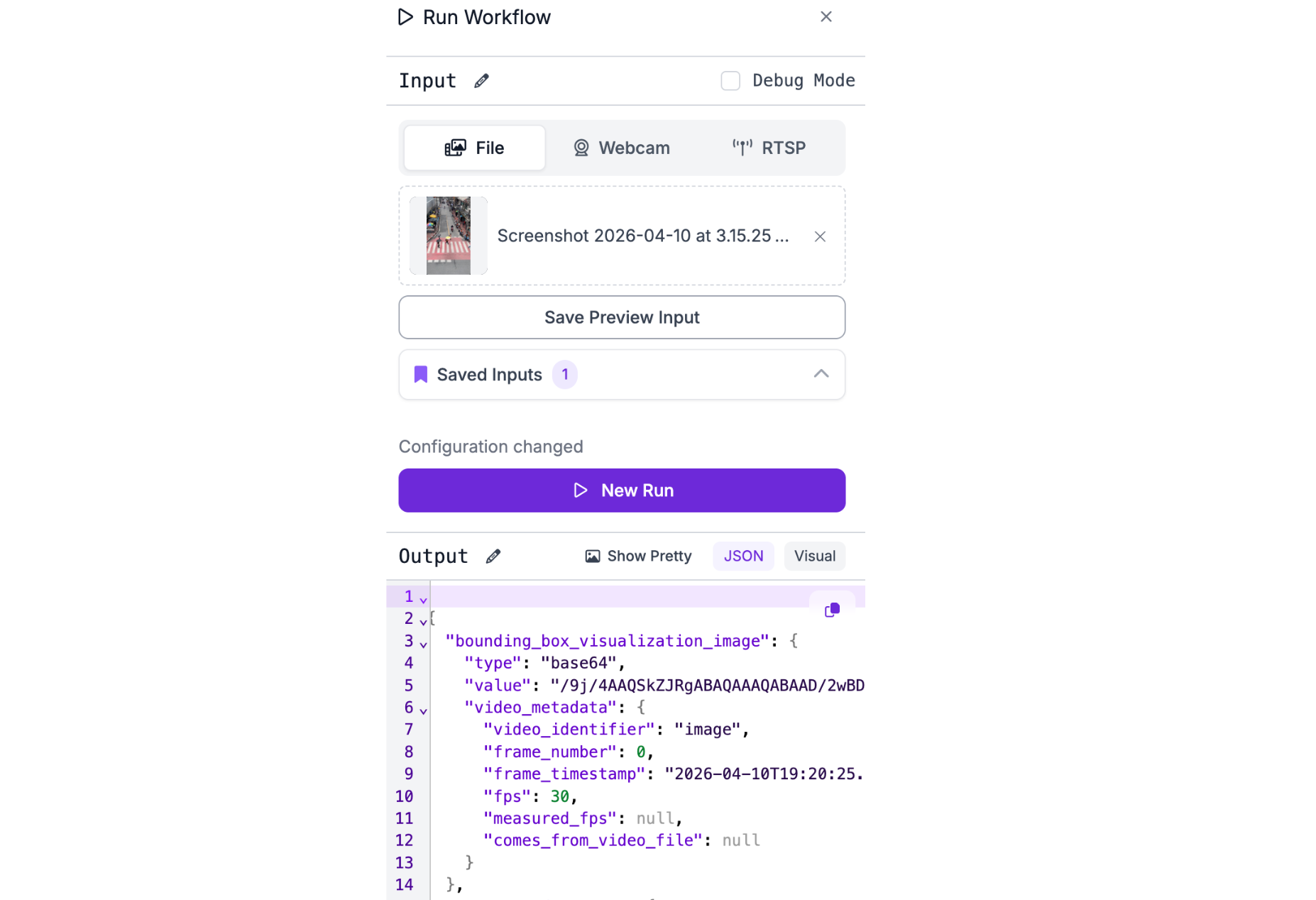 This script runs the workflow on each frame of an input video, and then uses basic if statements along with the supervision lib to check when the output predictions are in the zone polygon found over. If a pedestrian is hence in the zone, it colors their bounding box green, and if it's a vehicle, it colors it red.