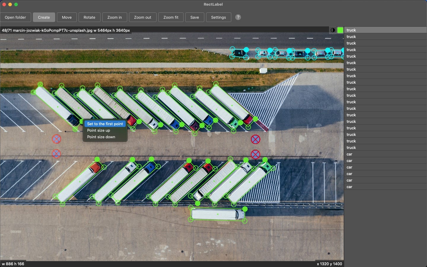 RectLabel is a macOS-native, offline image annotation tool tailored for object detection and segmentation tasks. It supports a wide range of annotation primitives such as oriented bounding boxes (especially useful for aerial imagery), polygons, cubic Bézier curves, keypoints, pixel-level masks with brushes and superpixels, and even OCR-based text labeling, making it a versatile choice for diverse annotation needs.