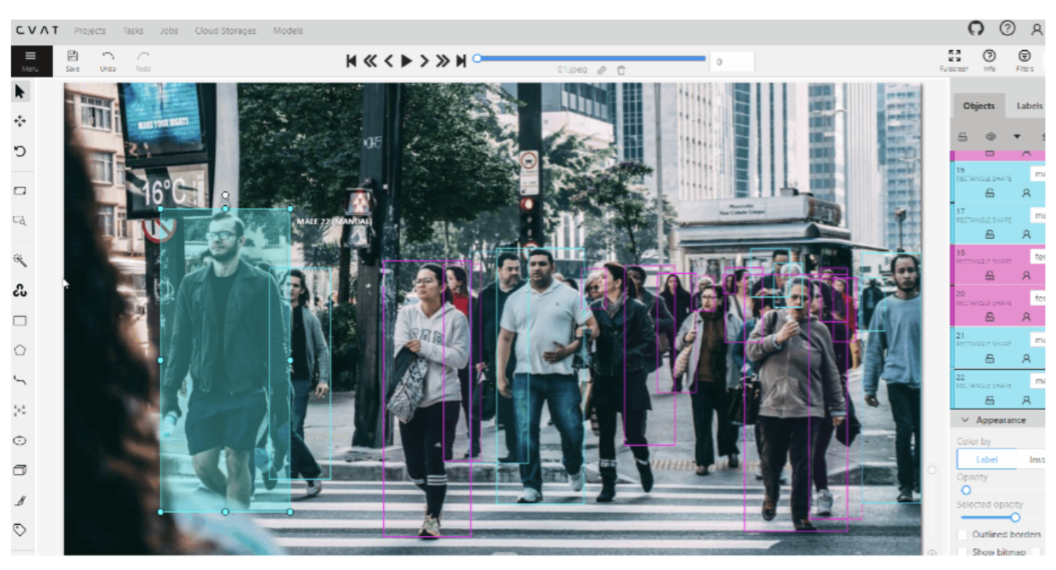 CVAT which stands for computer vision annotation tool is a well-developed and powerful labeling tool that is open sourced under MIT license since 2022. It supports many annotation types (bounding boxes, polygons, polylines, key points, and 3D cuboid annotations) for images. CVAT also has automation support which allows you to plug in machine learning models to pre-label images or integrate with segmentation models for semi-automated labeling.