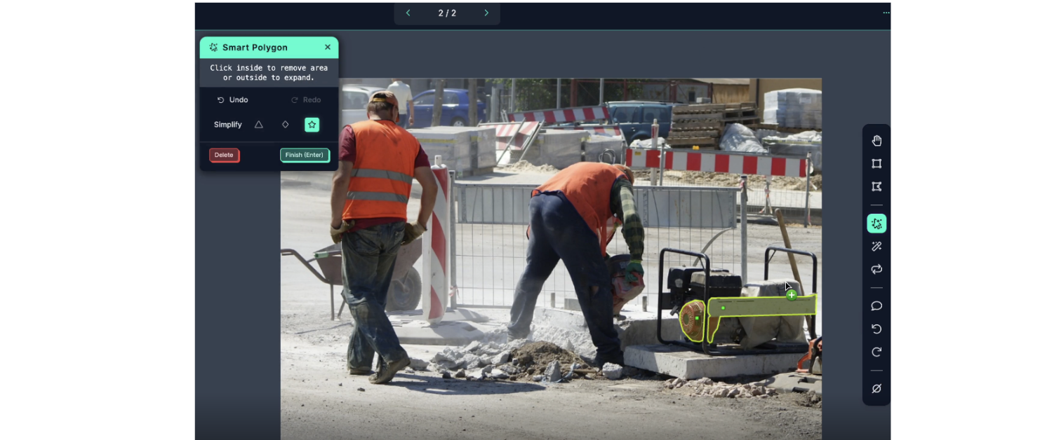 - Smart Polygon: a tool that leverages the Segment Anything Model to create polygon annotations with a few clicks.