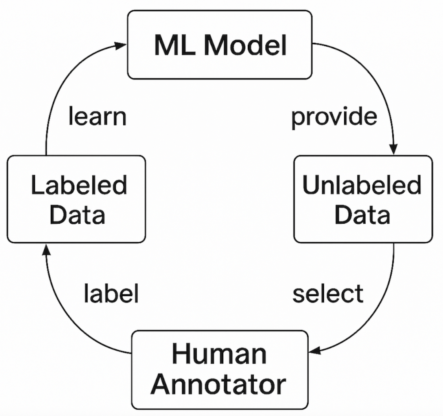 Active learning is a subset of human in the loop method, where you use a combination of human expertise and machine learning power to annotate a dataset. I personally use this powerful method in many projects. Using this method, researchers annotate a small portion of the dataset and train a machine learning model on them. Next, use the model to annotate the rest of the dataset, separate poorly labeled data, and annotate them manually. Finally, feed properly labeled data into the model for the next round of training and repeat this process until all data is labeled properly.