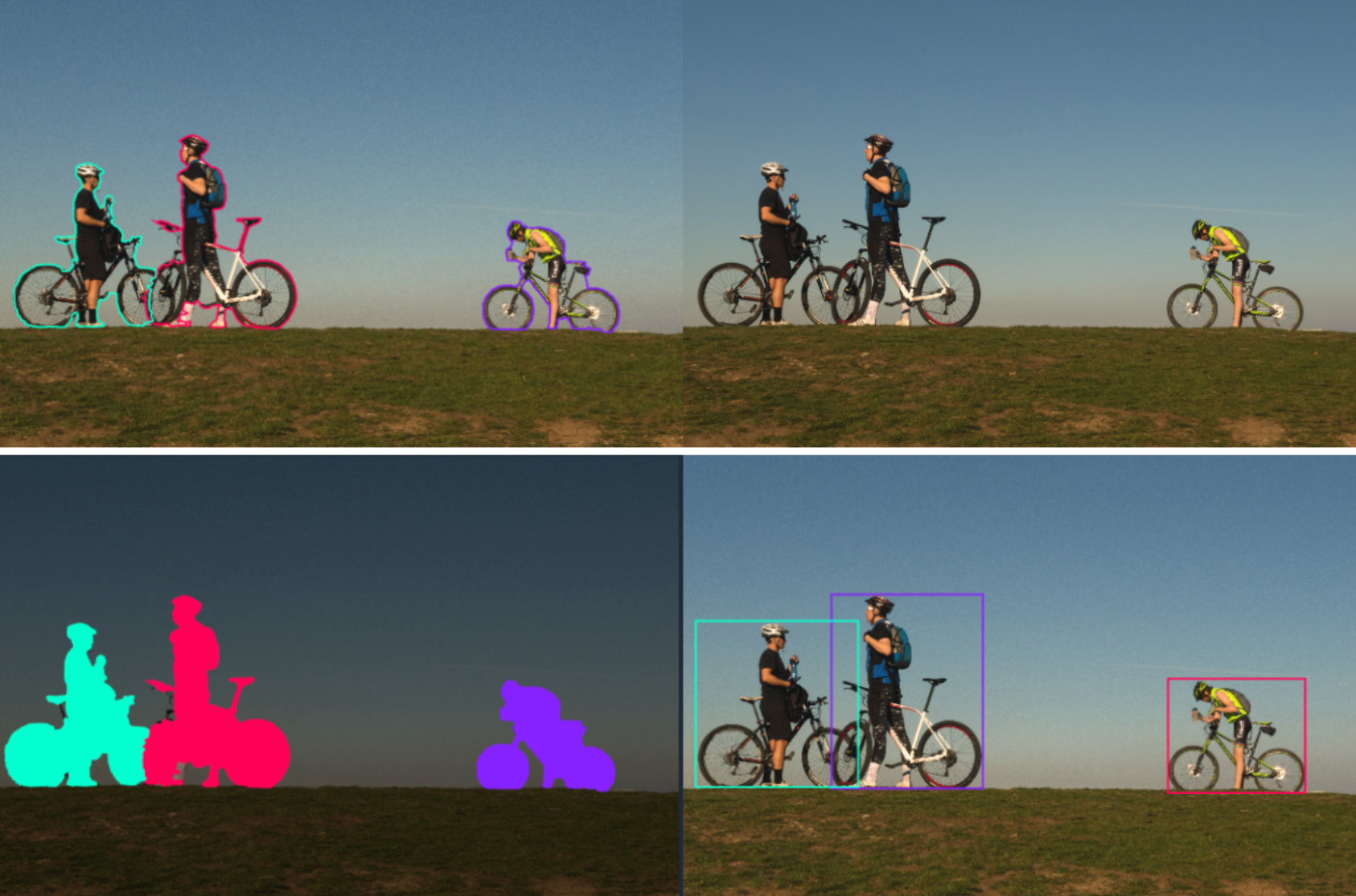 In instance segmentation, each instance of an object is identified, and their limit is determined. Let’s get back to our previous example. Using instance segmentation, you select each of 5 cats and label them separately as “cat_1”, “cat_2”, … “cat_5”.