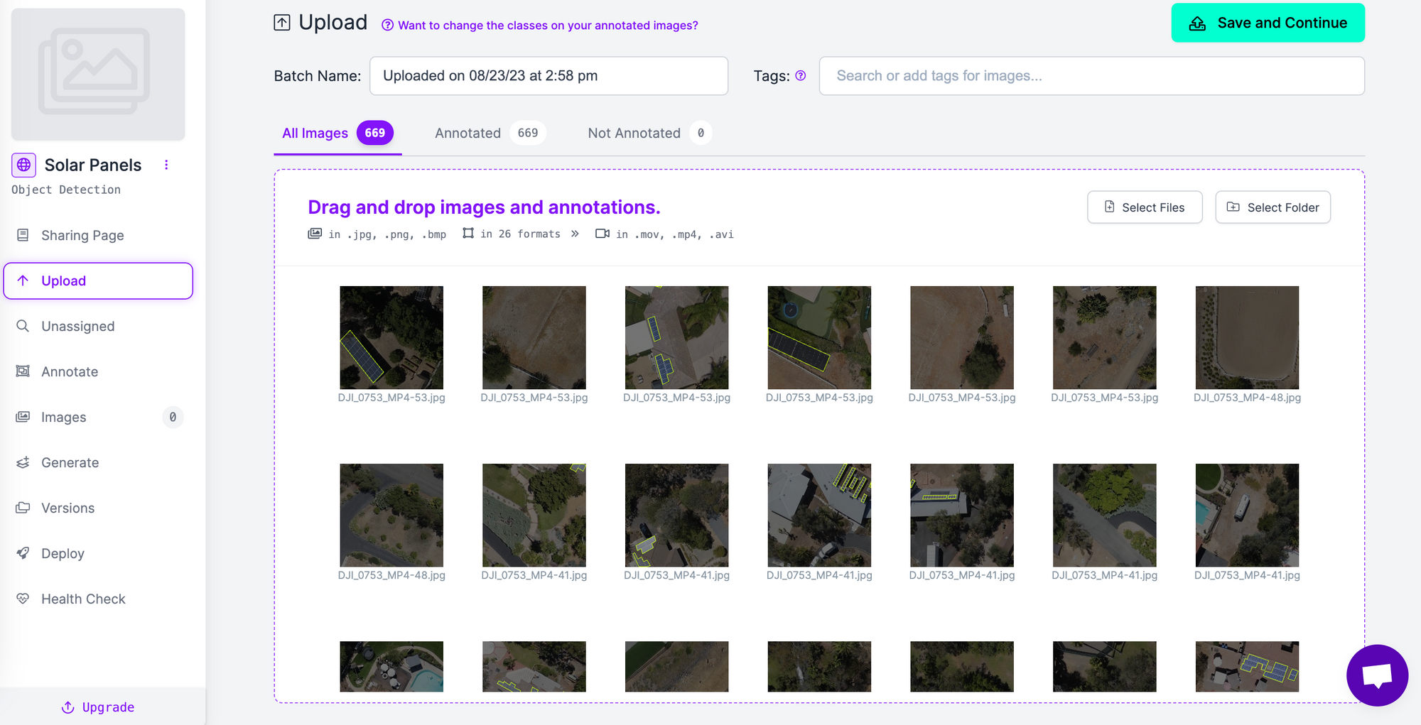 Click the “Save and Continue” button in the top right corner, then wait for your images to upload. This may take a few moments depending on how many images are in your dataset.
