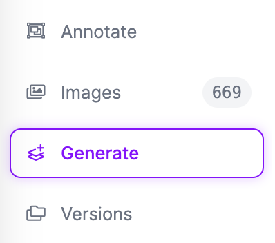 Once you have uploaded your images, click the “Generate” link in the Roboflow dashboard sidebar: