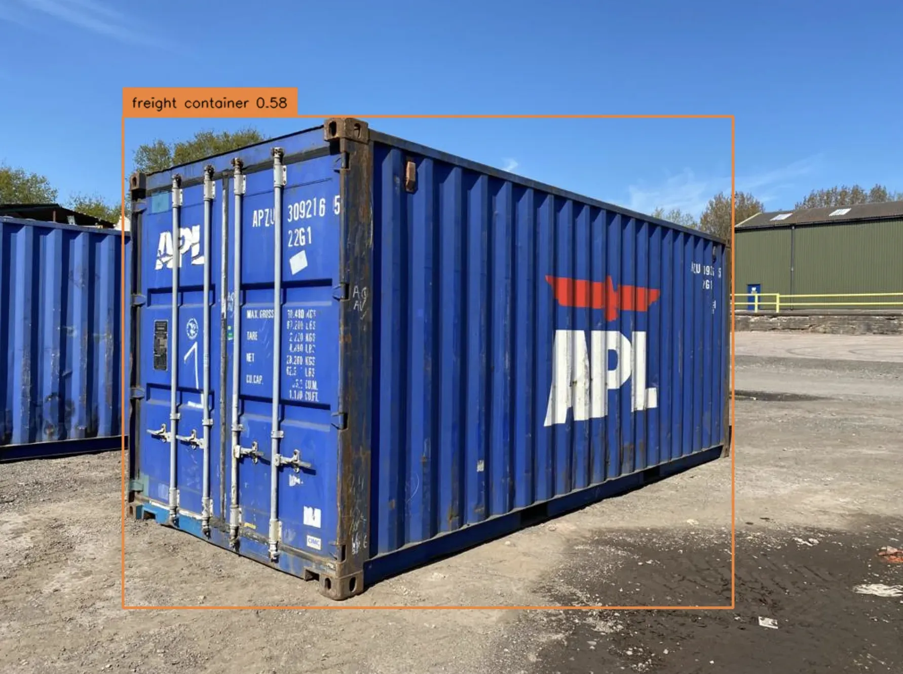 Here is an example of predictions from a shipping container detection model that runs offline: