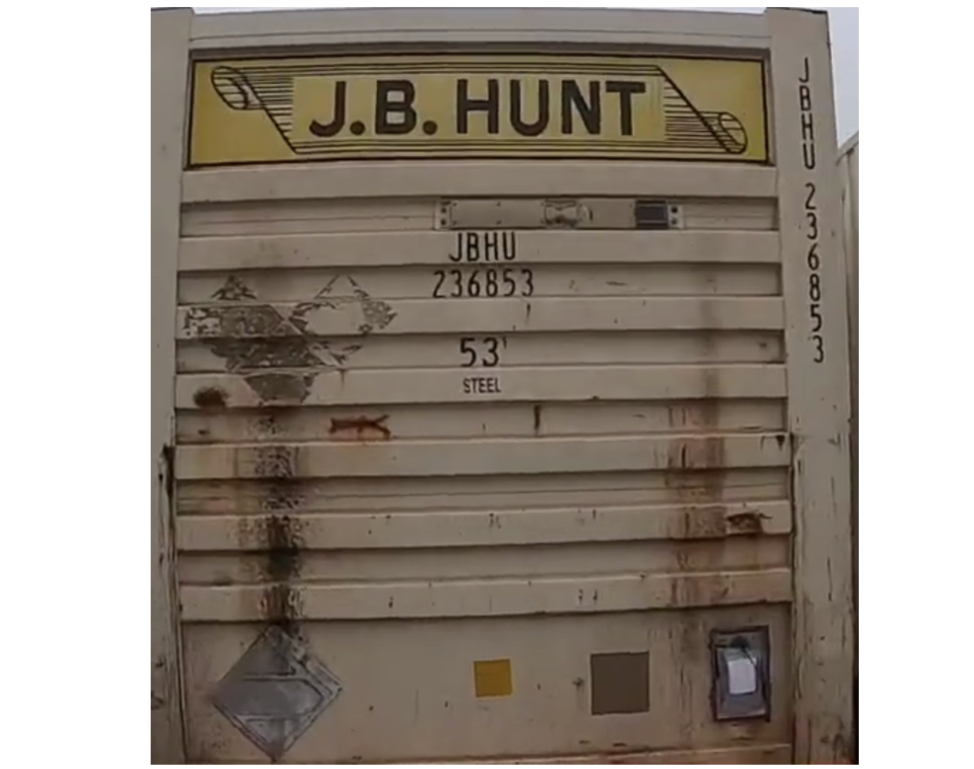 J.B.HUNT(container logo, correct)JHU N336853(attempted vertical container ID, but incorrect)JBHU(container ID, correct)236853(container ID, correct)