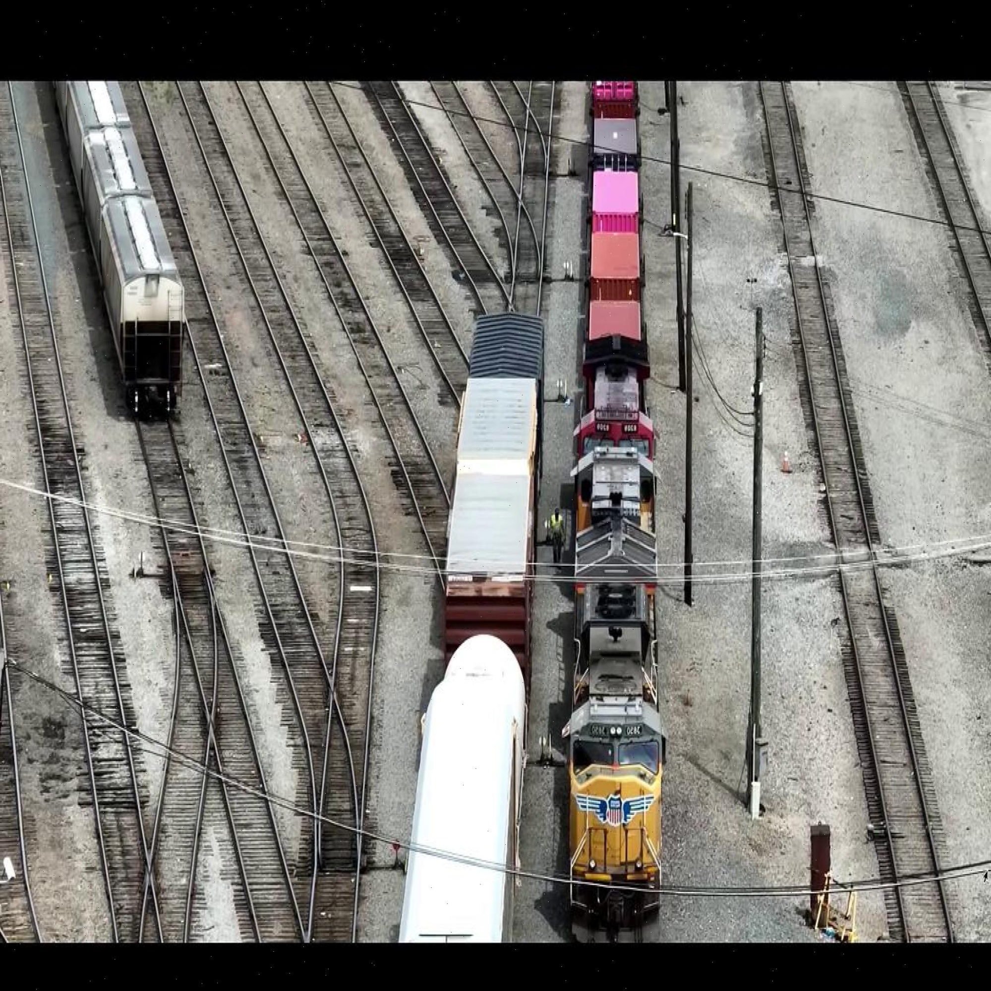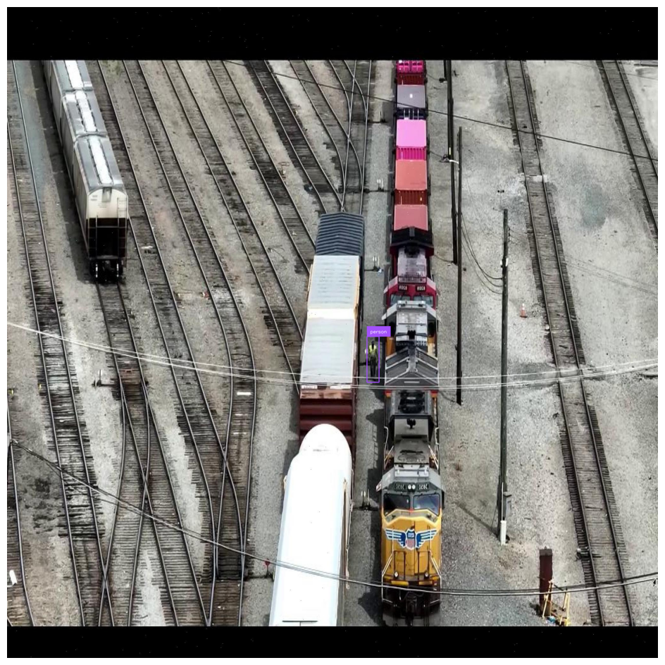 There is a purple box around the person, indicating a person has been found on the rail yard.