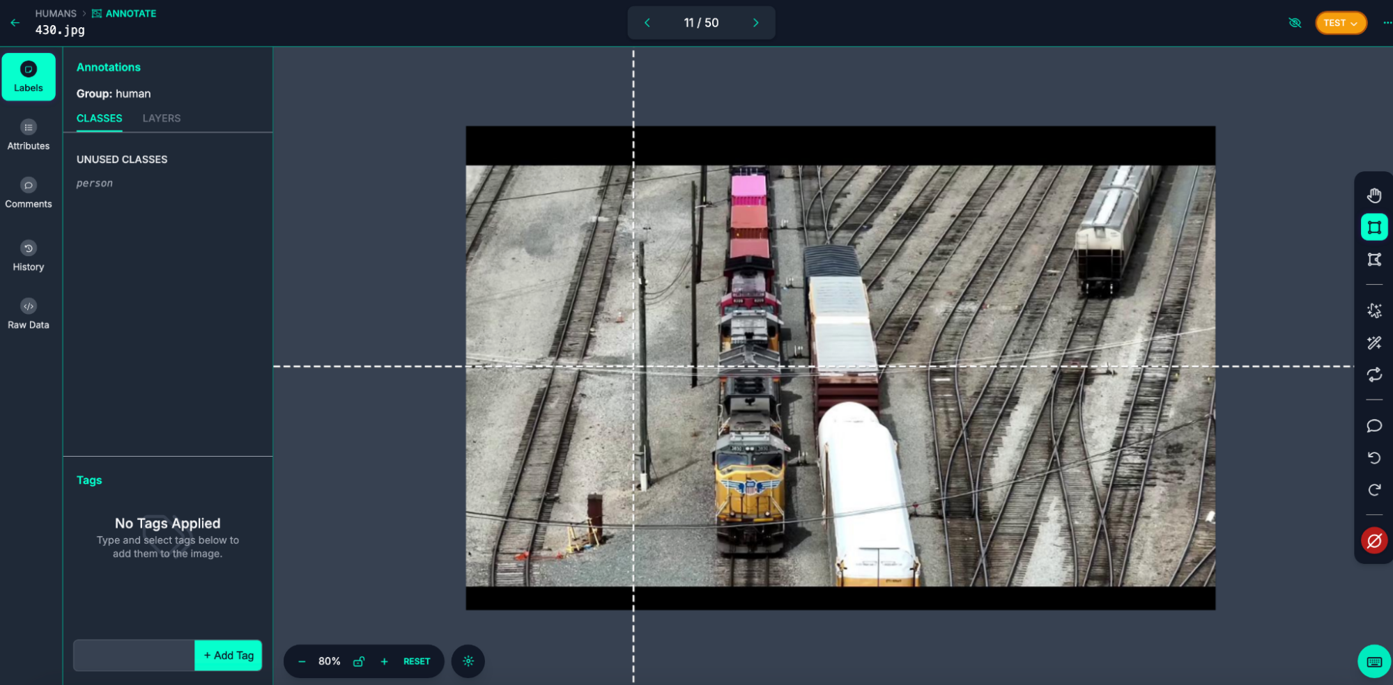 Next, add your images to the dataset. I used a dataset for detecting humans near a railroad track.