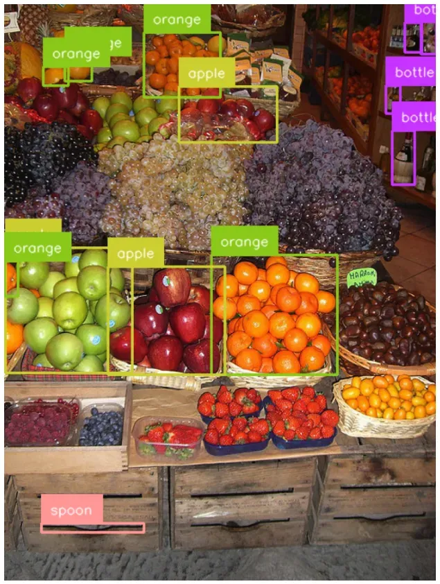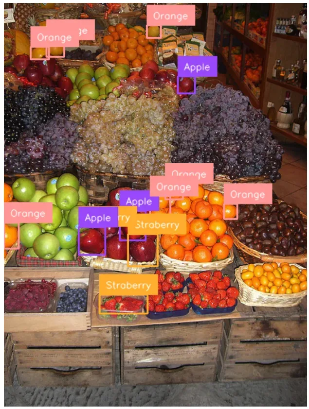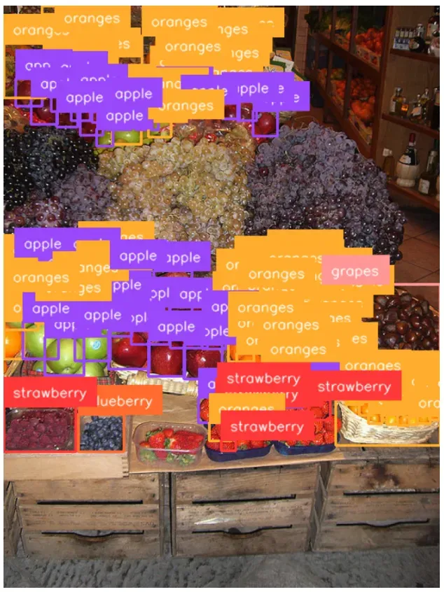 Our script successfully identified many fruits in the image. For a zero-shot model, the performance is significant.