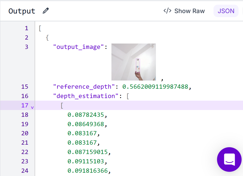 - The final outputs of the Workflows include, the reference depth and the depth map. Optionally, the image with bounding box and center coordinates.
