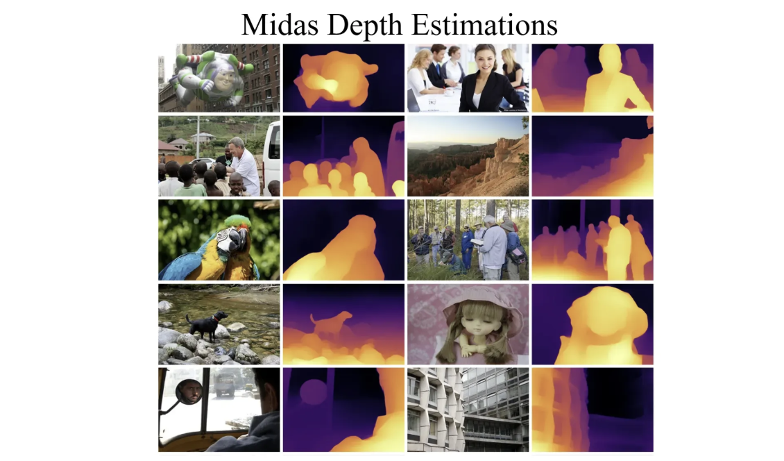 - MiDaS produces plausible depth estimates not only for photographs but also for line drawings and paintings, as long as some visual depth cues remain.
