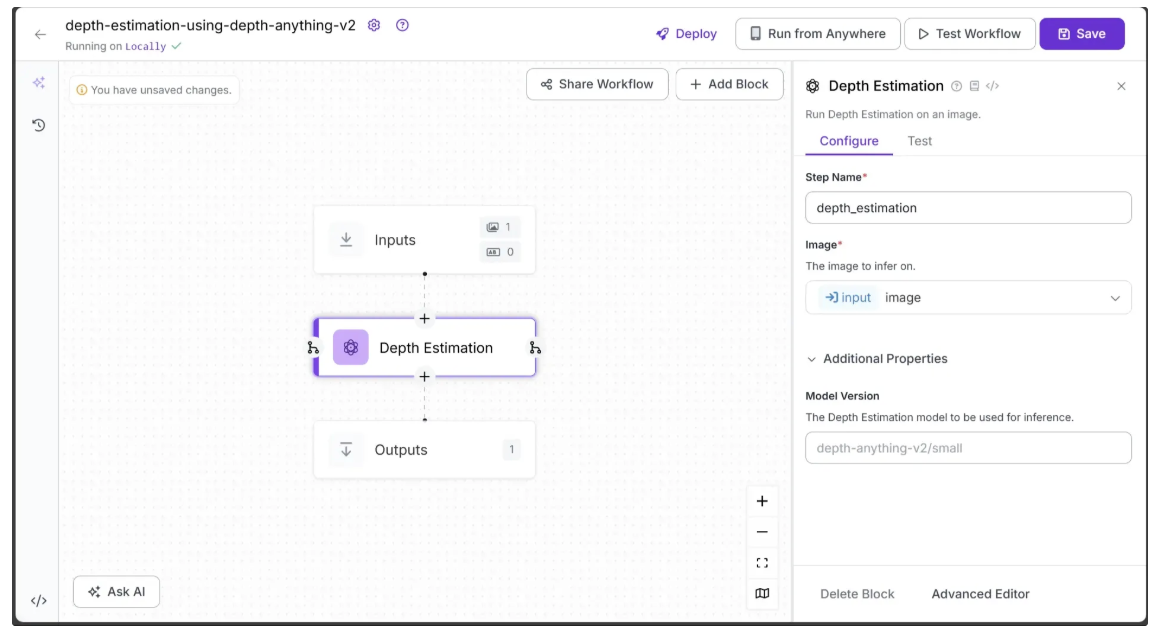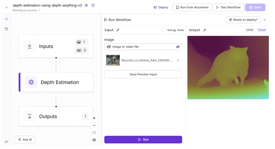 How to Run a Depth Estimation Model on Roboflow Workflows