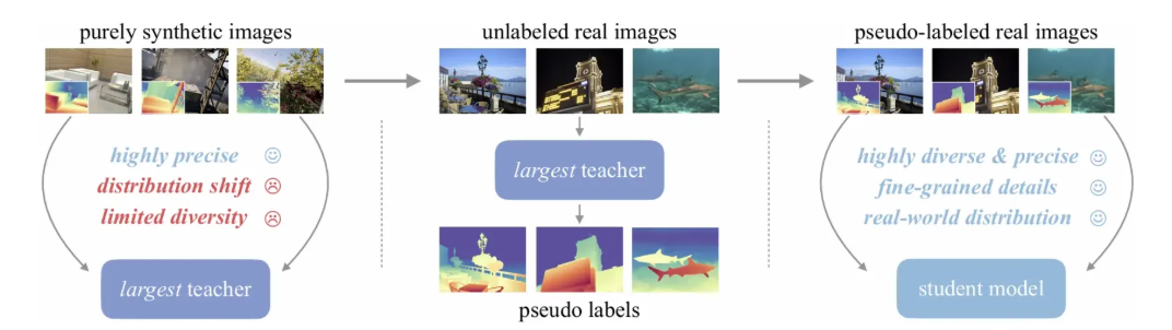 - Training lightweight student models on these large scale pseudo labeled real images, enabling them to generalize effectively to real world data while being faster and more efficient for deployment.