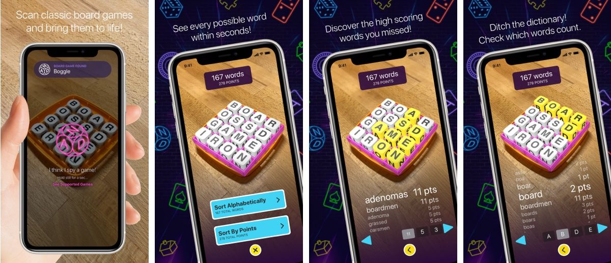 The first game we support is Boggle. It shows the words everyone missed so you get better faster!