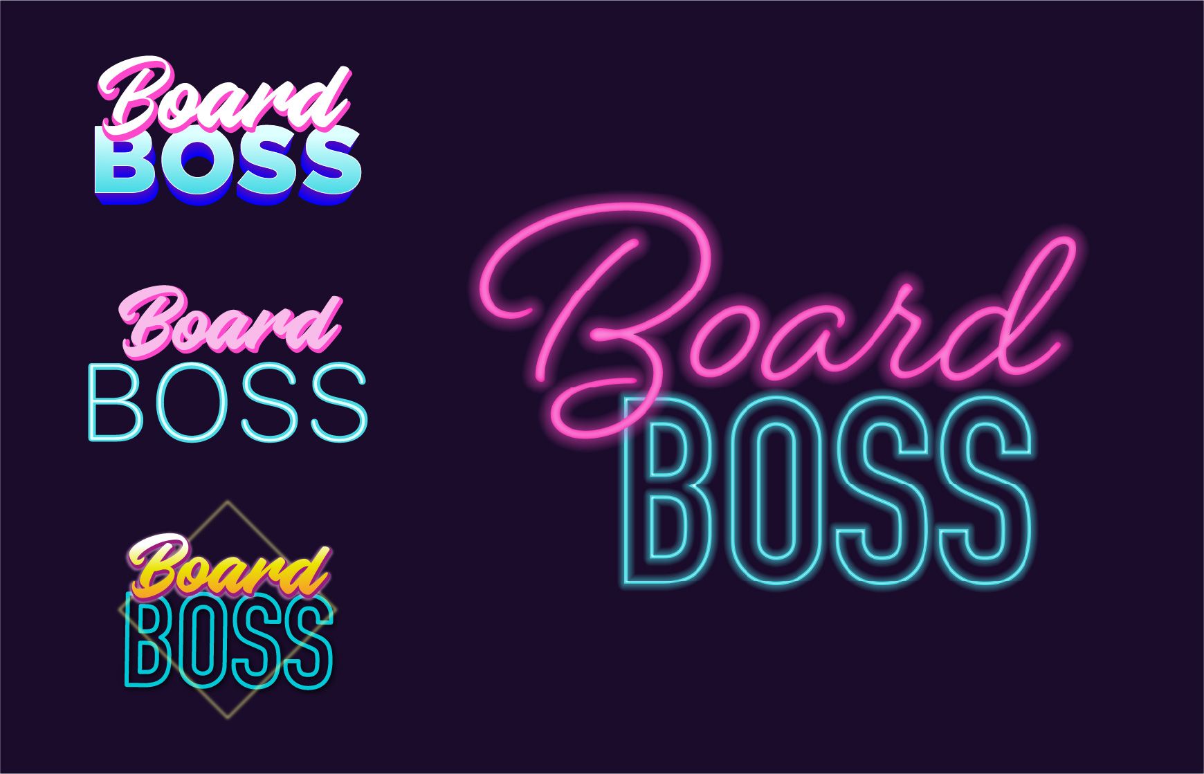 With a name like BoardBoss, the personality of the app needed to have some attitude. During my discovery phase, I noticed many augmented reality apps were using neon colors and dark backgrounds. These colors seemed to contrast nicely against busy backdrops, which is important when overlaying a camera view.