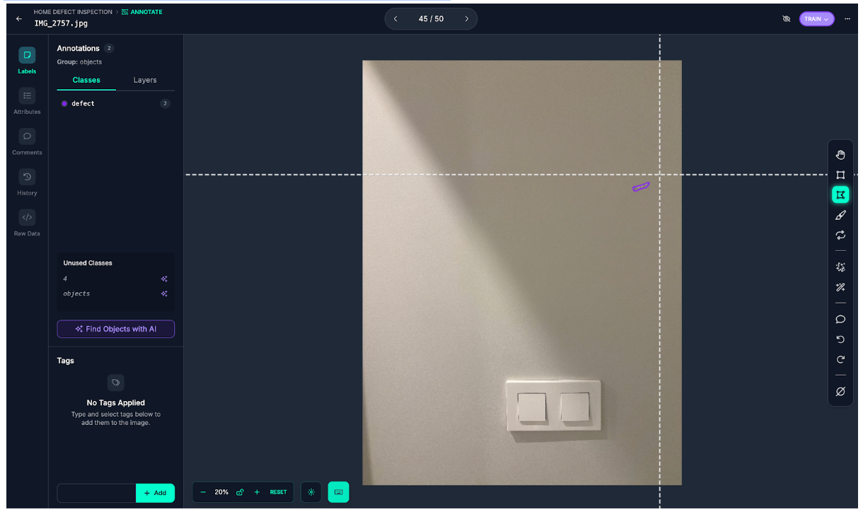 Once you have images, you need to annotate them. For segmentation tasks (more specifically instance segmentation), this typically means drawing precise polygon masks around each defect, which can be incredibly tedious for small, irregular shapes like cracks and scratches. This is where SAM3 makes a huge difference. Roboflow integrates SAM3 directly into the annotation interface, turning a time-consuming task into a few clicks.