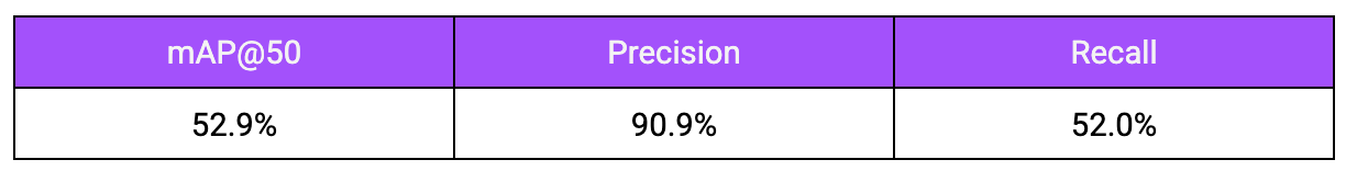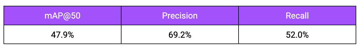 Training RF-DETR-Seg on just the raw images (no augmentation, no preprocessing) establishes our baseline: