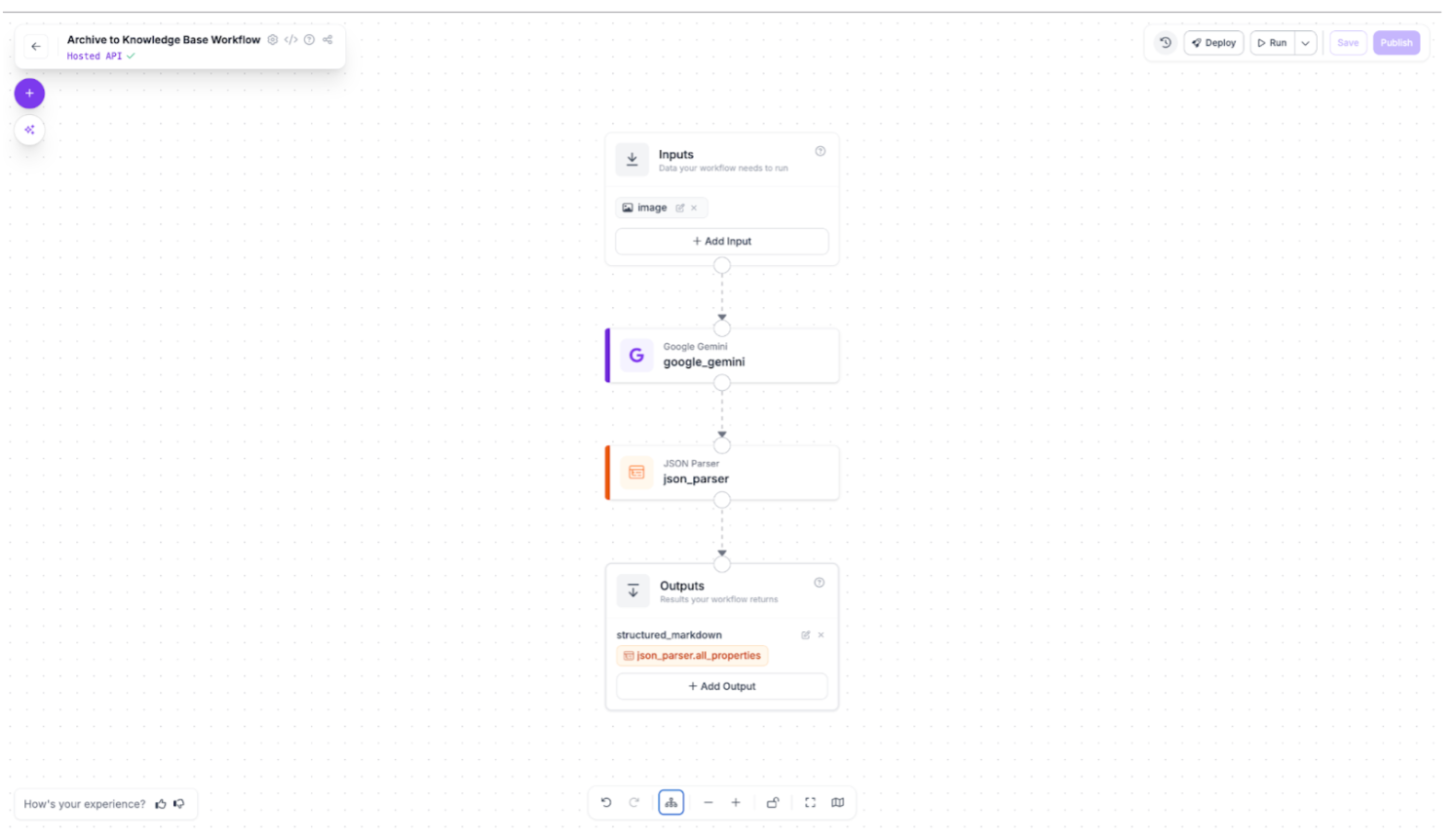 This workflow demonstrates how vision-language models extract structured markdown from scanned documentation. The complete pipeline uses just two blocks: Gemini 3 Pro analyzes each page image and outputs structured text, while a JSON parser validates the extraction. The result is clean markdown ready for import into modern knowledge management systems.