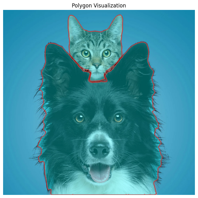 Since in the above example, we used format="polygon", each prediction mask is a polygon. The segment_image(..., format="polygon") returns masks in polygon form like shown below: