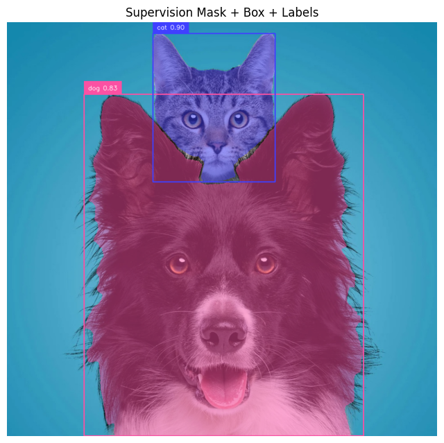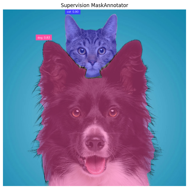 The key detail is that Supervision’s segmentation-style annotators such as MaskAnnotator, PolygonAnnotator, and HaloAnnotator use sv.Detections.mask. BackgroundOverlayAnnotator also uses masks when they are present.