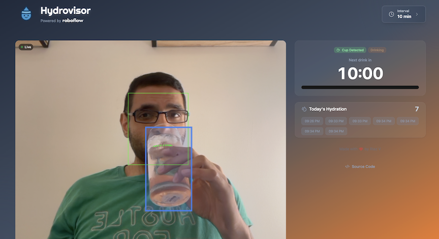 Riaz Virani. (Sep 16, 2025). Real-Time Drinking Detection: Building Hydrovisor. Roboflow Blog: https://blog.roboflow.com/drinking-detection/