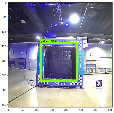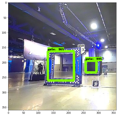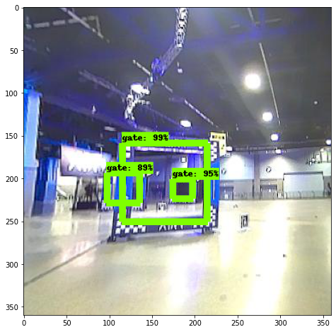 Example outputs from Victor's MobileNetSSDv2 model trained to identify gates. (Credit: Victor Antony)