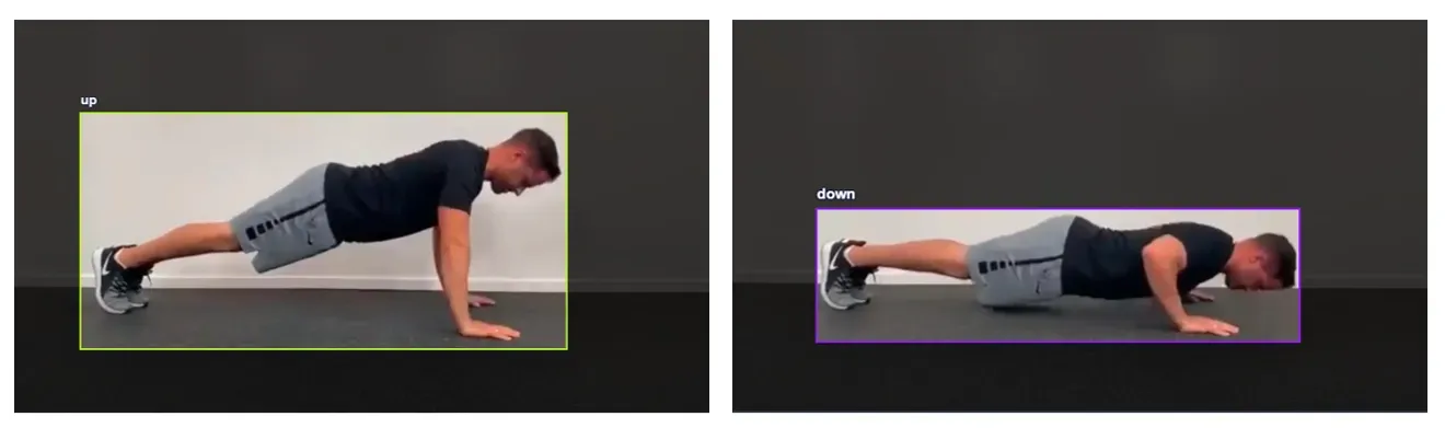 To effectively classify various exercise poses, such as push-ups in our example, we will use an object detection model. For this guide, we will focus on push ups. We will train an object detection model to identify one of two exercise states: 'push-up' and 'push-down.' These distinct states serve as the foundation for determining and calculating the push-up count.
