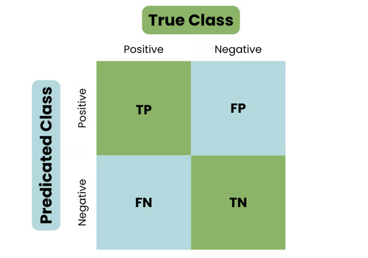 Before we go in-depth into the F1 score, we need to learn about precision and recall. To understand their formulas, let’s introduce a confusion matrix. A confusion matrix summarizes the results of the model’s predictions on a set of data, comparing the predicted labels to the actual labels.