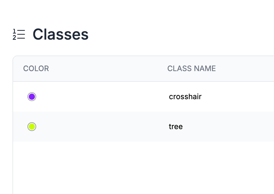 Then, add the classes you want your model to detect. In our case, we need to detect the crosshair and the trees.