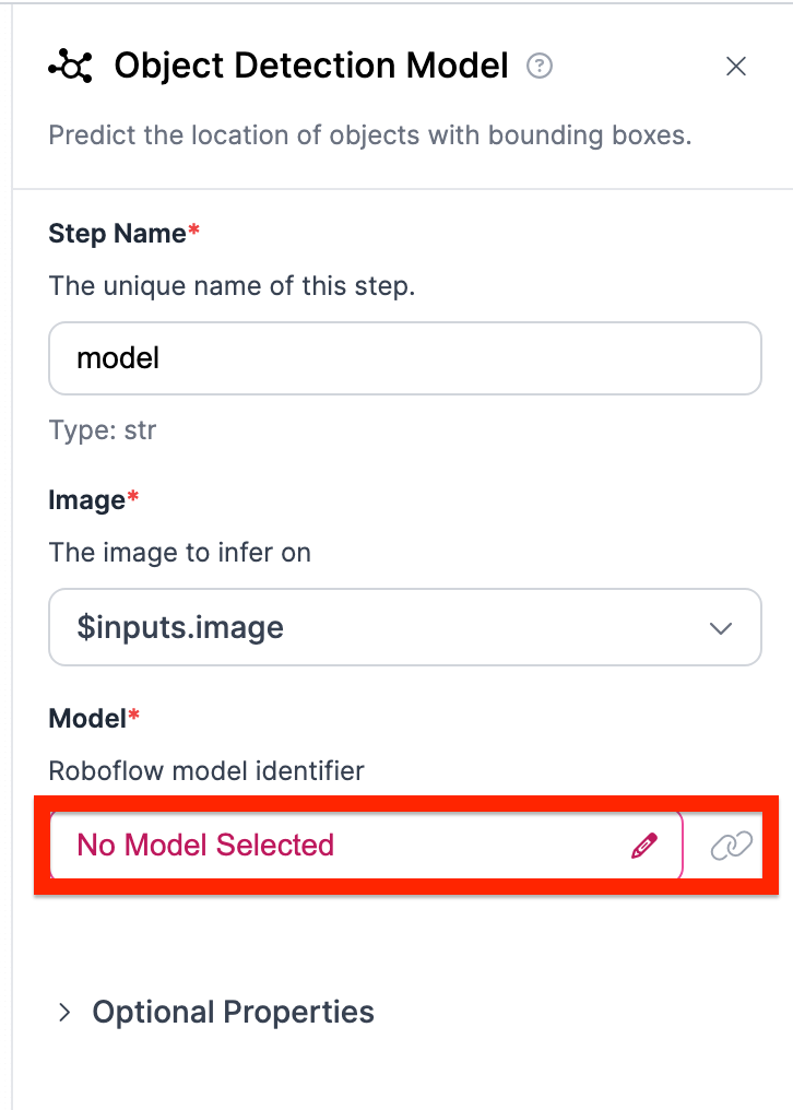 Now we have to pick which specific object detection model we want to use. To do this, click on the Model button.