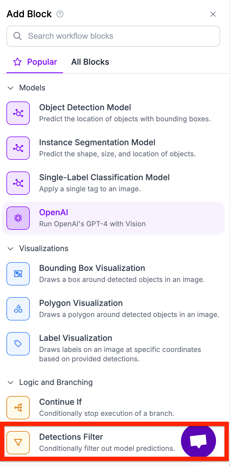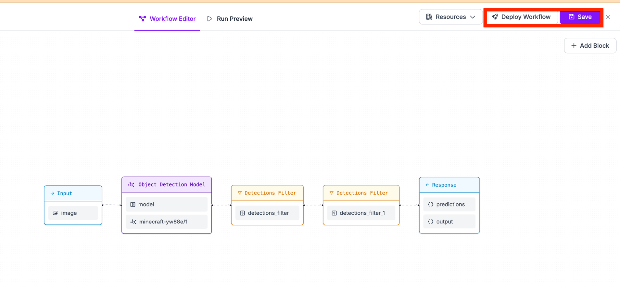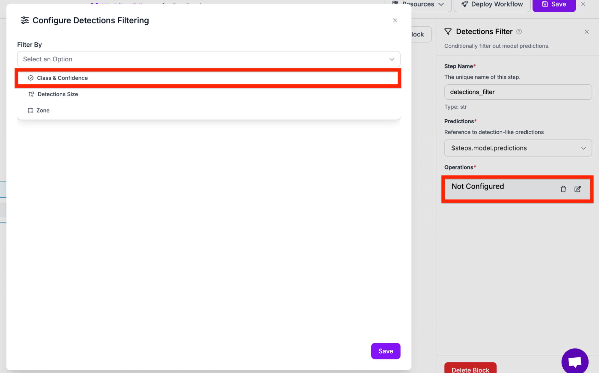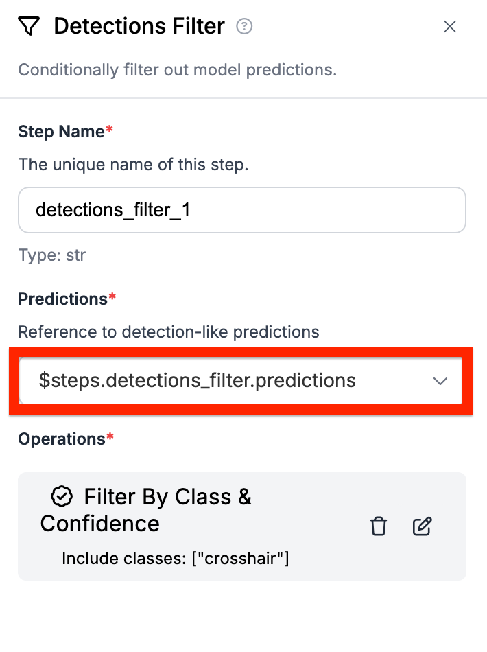 Next, we need to filter out the specific predictions. We can do this by using the filter predictions block.