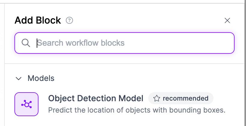 Next, navigate to add block and search for “Object Detection”: