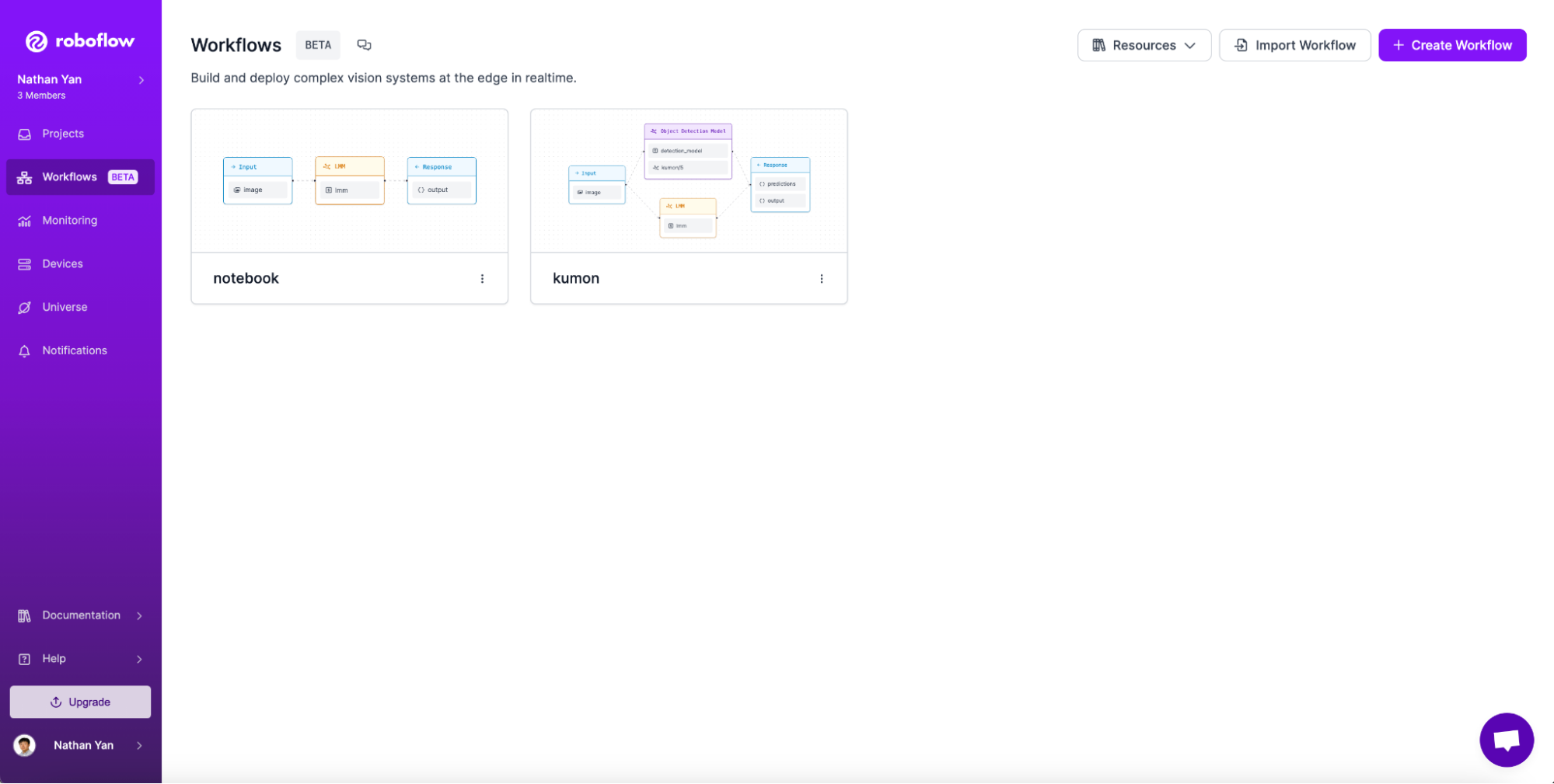 Workflows is a web-based, interactive computer vision application builder. You can use Workflows to define multi-stage computer vision applications that can be run in the cloud or on your own hardware.