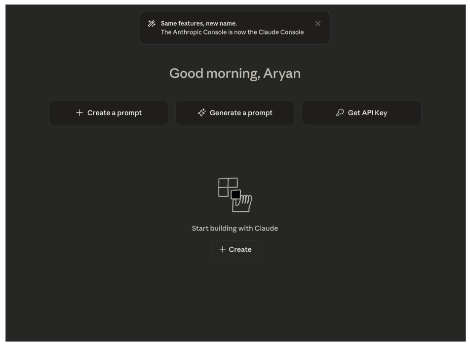 To be able to use Claude 3.7 Sonnet, we’ll need an Anthropic API Key. To get one, head to the Claude Console for developers, and log in/create an account. Heading over to the console: