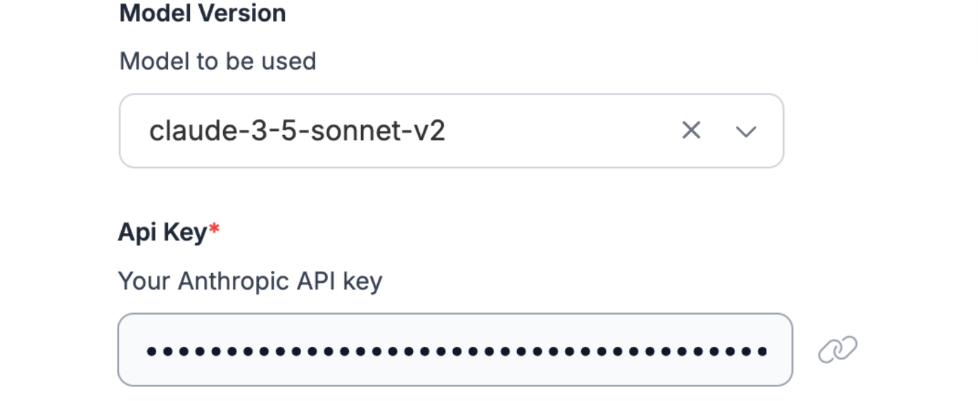 From here, select Claude 3.7 Sonnet as the model and add the Anthropic API key: