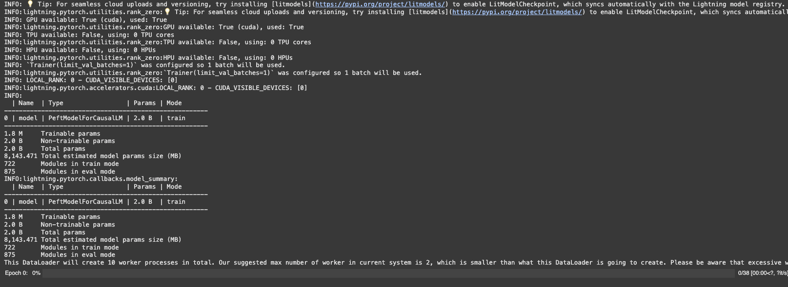 Finally, running the trainer snippet allows us to initiate training:
