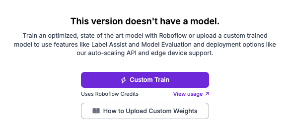 Once your dataset version is ready, you will be taken to a page on which you can start training a model using your dataset.