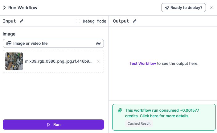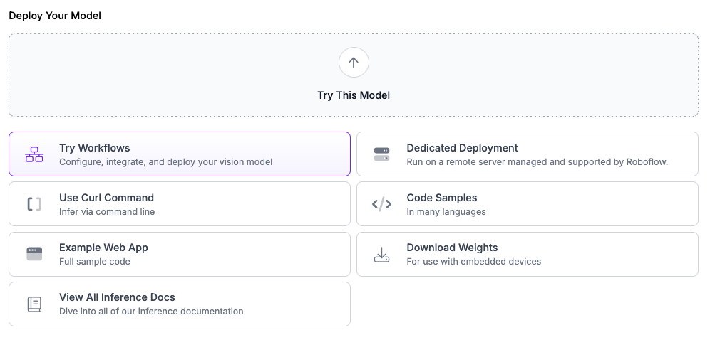 Once your model has finished training, you can start using it in the cloud and on your own hardware using Roboflow Workflows.