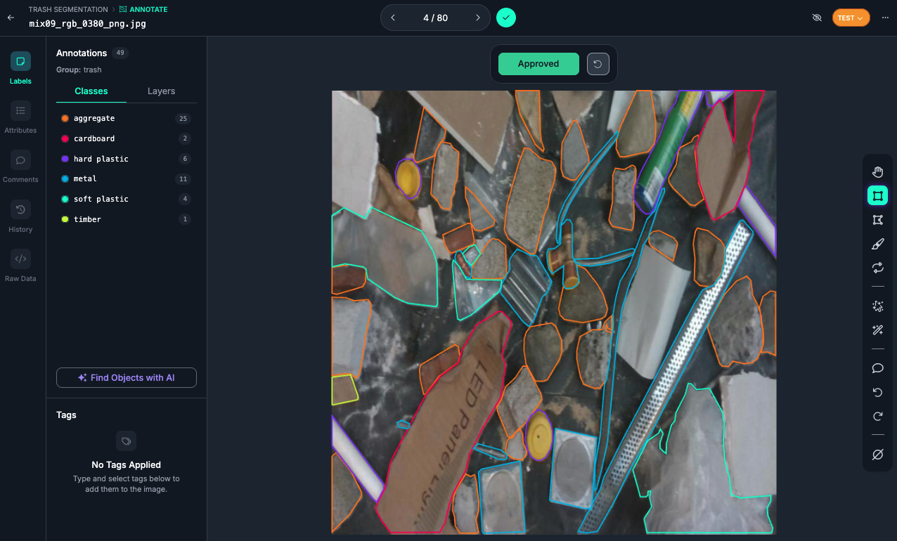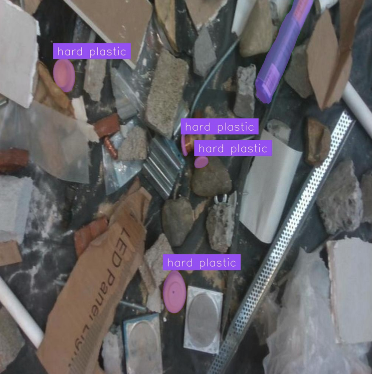 SAM-3 returns precise masks for a class in our dataset: hard plastic.