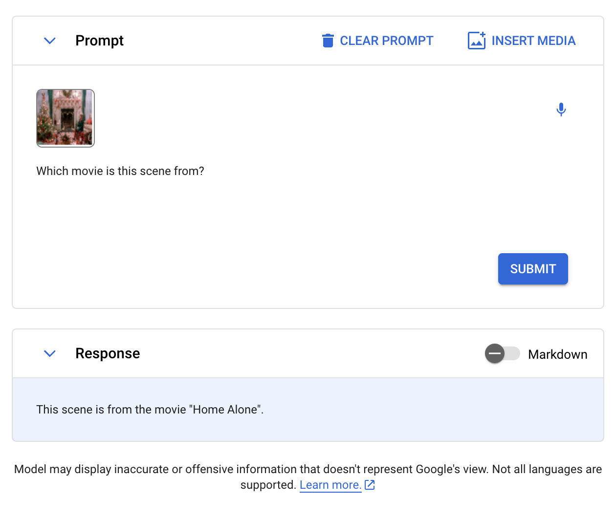 The model successfully identified that the movie featured was “Home Alone”.