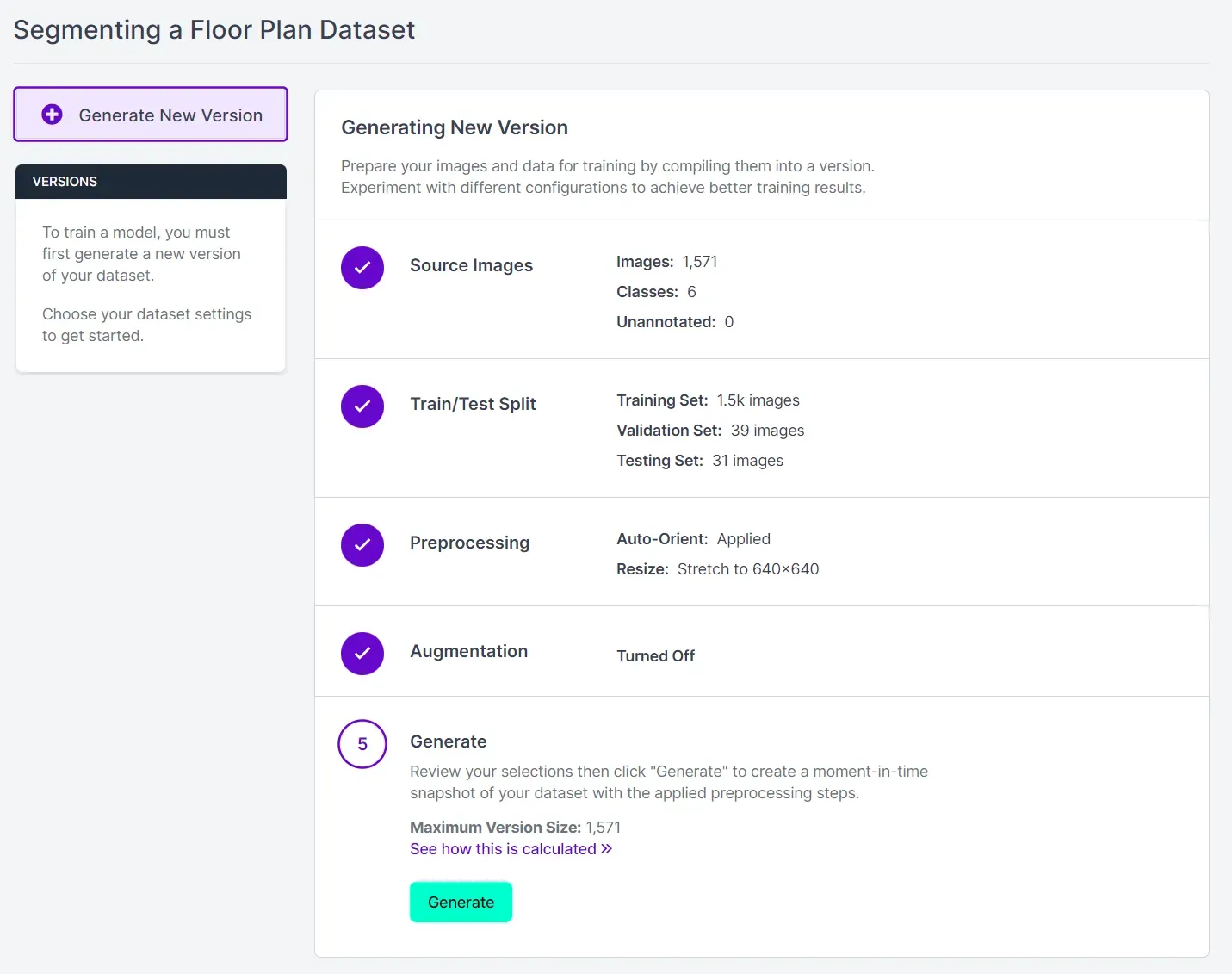The dataset version creation process may take a few minutes, depending on the size of the dataset. Once the dataset version is successfully generated, we are all set to proceed with training our model!