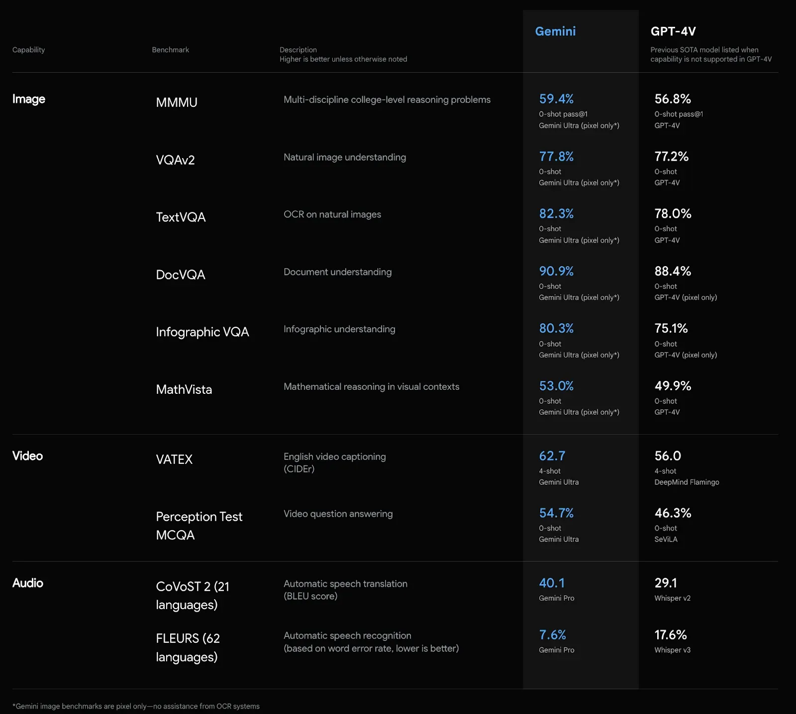 Speech was also a major focus of Gemini's capabilities, with a dedicated video highlighting how nuances of speech can often be lost when using multiple separate models. (a suspected jab at OpenAI's implementation of using Whisper, their speech to text model, in combination with GPT-4)