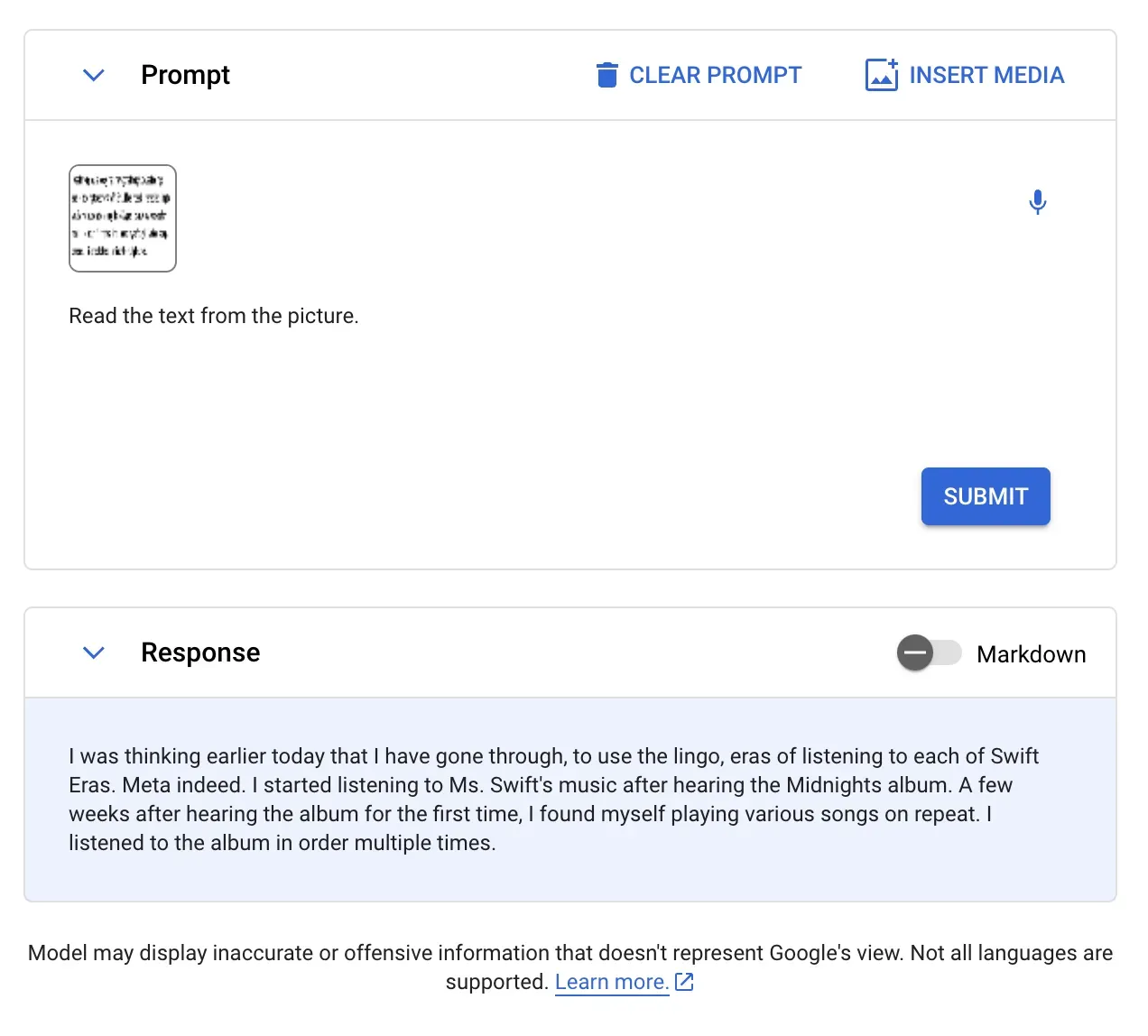 With that said, how one "prompts", or asks, a model, is critical. There are some "prompting techniques" that can help you improve a model's ability to accurately answer a question. We expect this to be the same with Gemini.