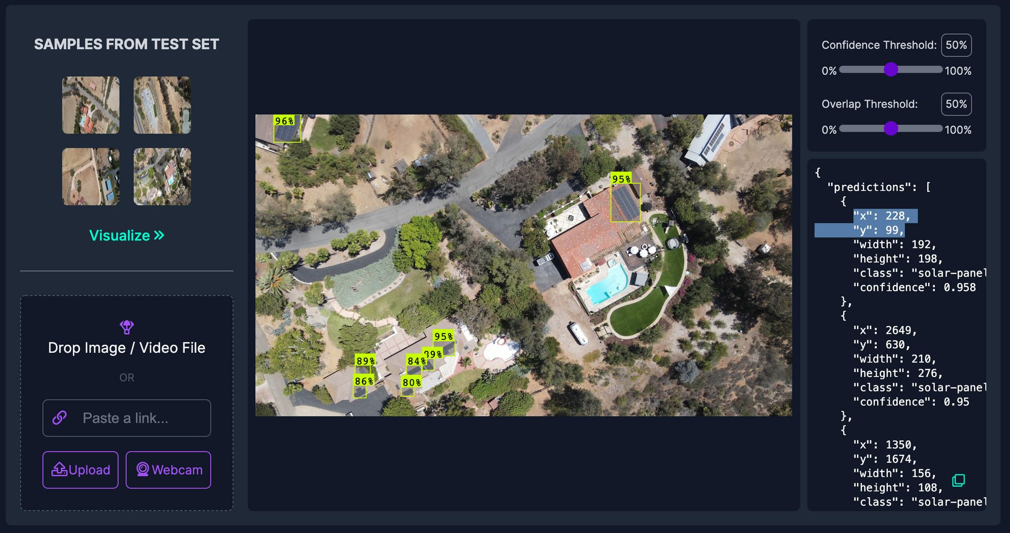 For the rest of this tutorial, we'll be utilizing a model trained to detect solar panels in aerial imagery and a video shot with a DJI Mavic Air 2.