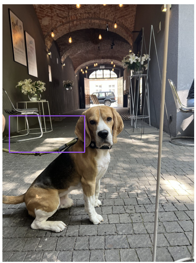Finally, we challenged GPT-4.1 to detect the location of an object in an image. This is a task with which many multimodal models struggle. We provided the following image and asked GPT-4.1 to “Return the xyxy coordinates of the dog in the image.”