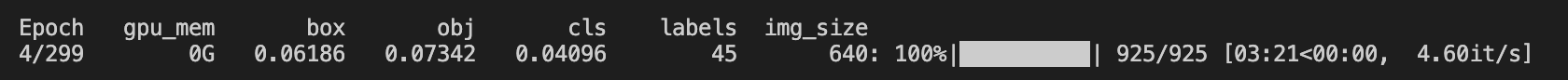 python3 -m torch.distributed.launch --nproc_per_node 8 train.py --noval --data ./data/coco.yaml --weights '' --cfg yolov5s.yaml --project runs/train1 --epochs 300 --exist-ok --batch-size 128 --device hpu --run-build-targets-cpu 1 --run_lazy_mode --hmp --hmp-opt-level O1During training we witness a 3:21 epoch time: